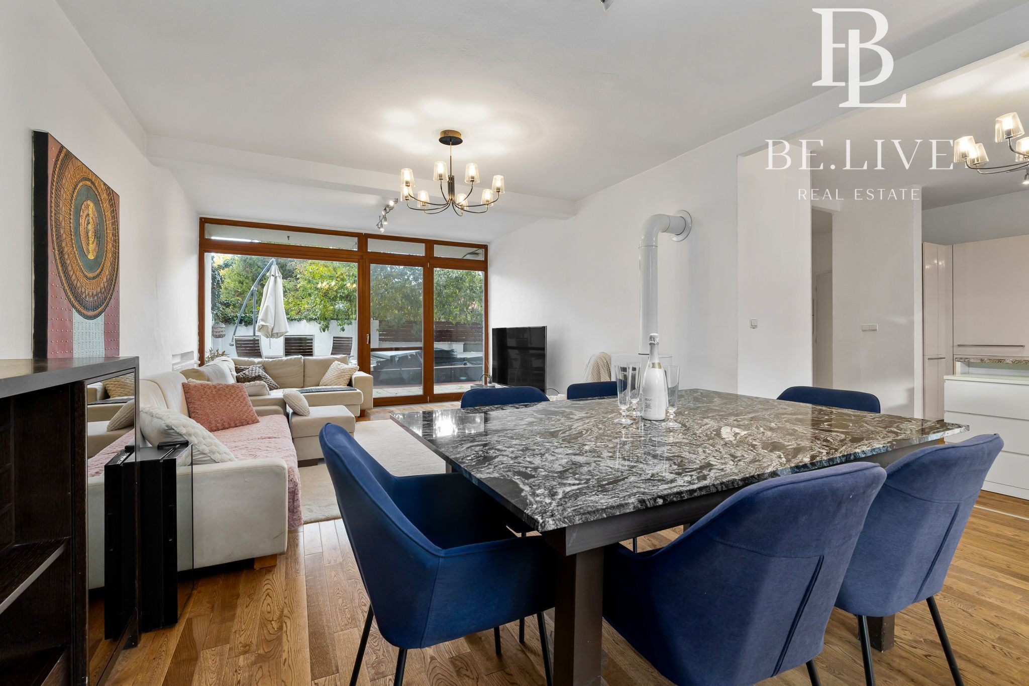 Kuchynská pracovná doska a jedálenský stôl sú z himalájskej žuly, podlaha je z masívneho dreva.