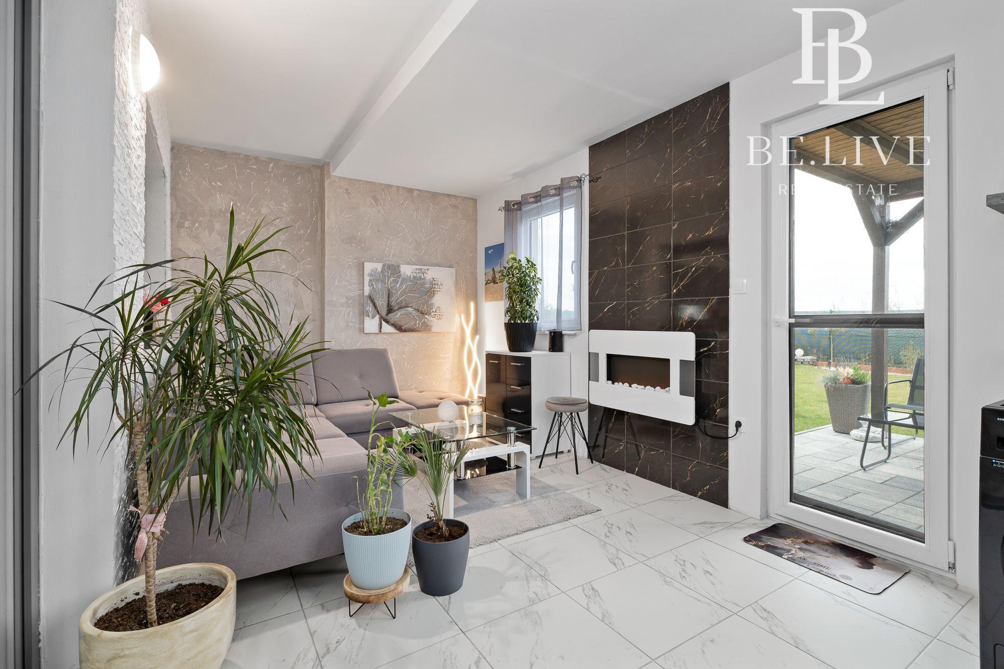 • Zimná izba prerobená na plnohodnotnú obytnú miestnosť (18 m²) s elektrickým krbom a vstupom do záhrady