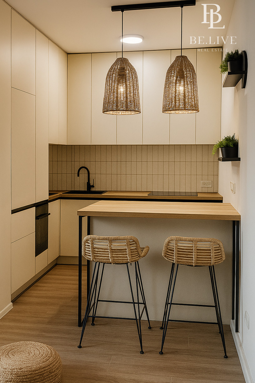 Predstavujeme vám moderný 1,5-izbový byt ktorý je pripravený na okamžité nasťahovanie bez akýchkoľvek ďalších investícií. Dizajn, funkčnosť a komfort tu vytvárajú dokonalý domov – ideálny pre jednotlivca, pár alebo ako investíciu.Byt je kompletne zariadený dizajnérom v štýle Boho, s dôrazom na funkčnosť, komfort a útulnú atmosféru, a ponúka všetko, čo potrebujete pre príjemné bývanie alebo investíciu.