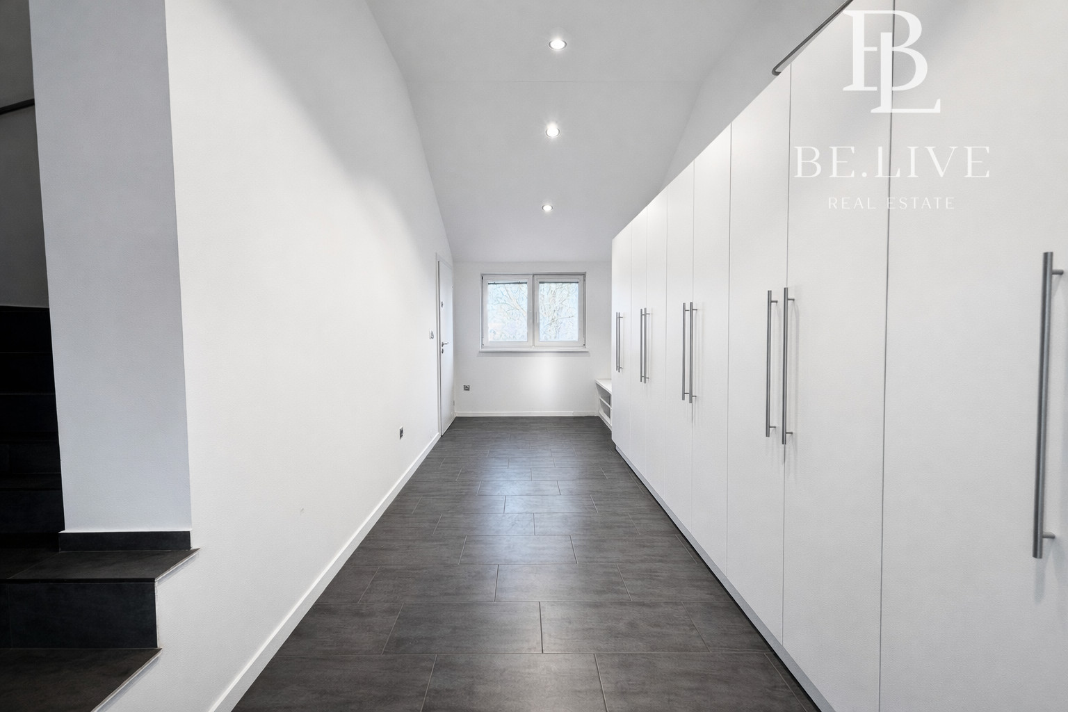 • spodné podlažie tvorí priestranná vstupná hala s veľkým vstavaným úložným systémom po celej stene