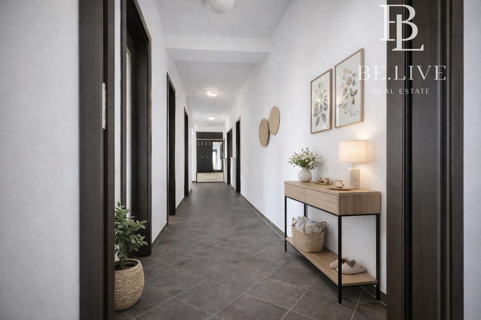 Priestranné a svetlé izby a výborne dispozičné riešenie s oddelenou dennou a nočnou časťou.