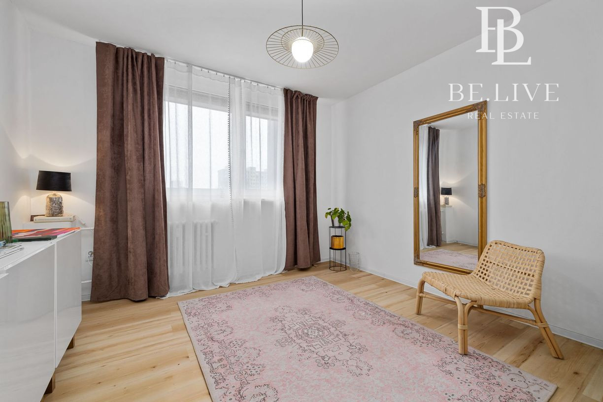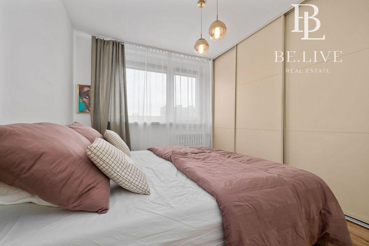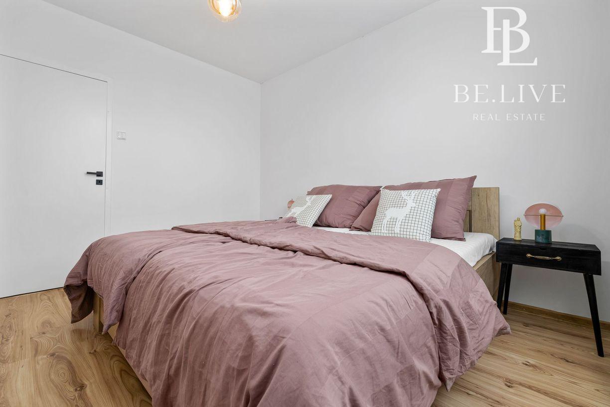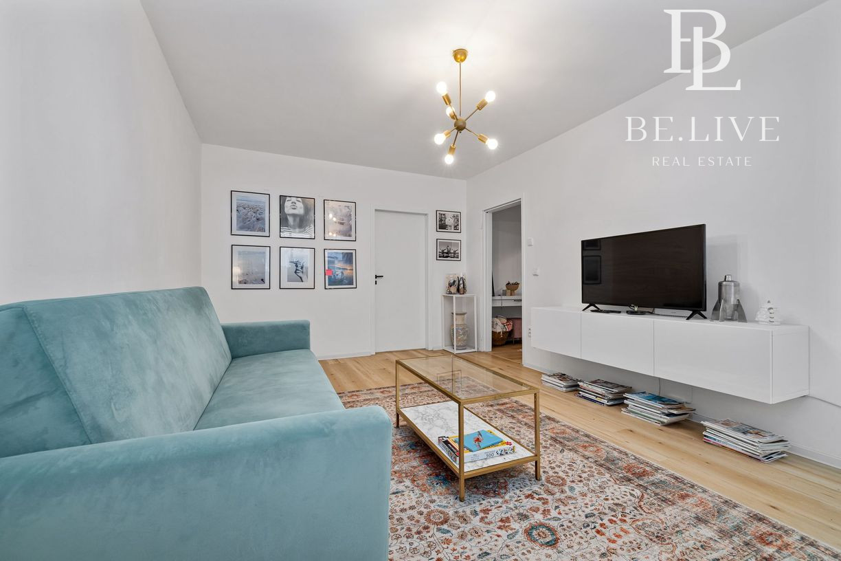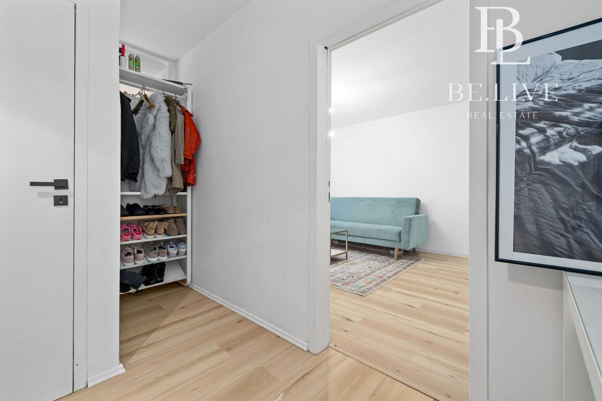 Klimatizácia zabezpečuje komfort počas leta. Orientácia: obývačka sever, spálňa juh.